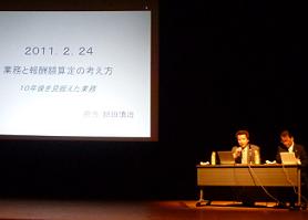 平成23年2月24日(木)横浜市民文化会館関内ホールに於いて第一部「新オンライン申請システムについて」第二部「業務と報酬額算定の考え方」として行われ、広報部一員として出席(予め寄稿を内諾)し何時にもなく緊張して講義を受けました。