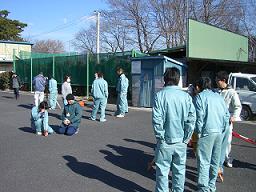 最後は同じ場所で逆打ちの実習。トランシットが4台既に据えられていて、県西支部の会員が2名ずつ待機している。4グループに分かれ、あらかじめ計算された逆打ちの計算書に沿ってアスファルト上にマーキングをするという作業。事前に渡された内部資料では『星型の頂点と、各頂点を結んだ線の交点の計10点を逆打ち』という事だが生徒達には完成形は知らされていないらしい。生徒全員が一人ずつ器械の操作とミラーマンを交互に体験する。会員が、器械を操作する生徒とプリズムを持つ生徒にそれぞれ張付き手取り足取り教えている。「右・・・、いや左」「川側、校舎側って言えばいいんだよ」「あ、そうか」。おいおい10点もあるのに、そんなことしていたら日が暮れてしまうよ・・・。