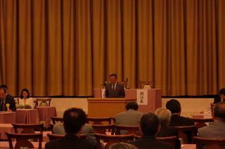 議長は続いて平成22年度の運動方針案を福本正幸会長に発表させ、また同年度の一般会計予算案を佐々木佐市副幹事長に発表させました。これらの案も議場に承認されました。