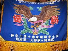 知り合いをたどり、茅ヶ崎市のスポーツ少年団の副団長さんを紹介してもらい協議の結果、子供達の室内スポーツで人気のあるミニバスケット部門に優勝旗を作って寄贈する事となりました。