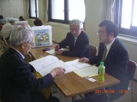 13時00分から相談開始になり、受付において相談者から相談の概要を聴取した後、相談内容に応じて相談者を各参加機関にご案内する方式で行い、土地家屋調査士業の関係では境界等の相談で3名が来られ、佐川祐介研修部長と清田尚横須賀支部長が応対しました。