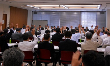 総会は茨城会が当番会でしたが、東日本大震災で被害を受けたため、東京会館での開催でした。22年度の事業報告と23年度の事業計画が慎重に滞りなく審議が進行しました。