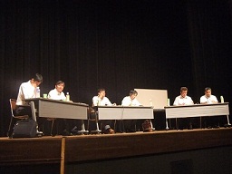 今回の研修は、今までと多少趣きも違い、問題形式のレジュメが配布され、開演前から、皆、一心に解答していました。主だった登記法の改正や土地家屋調査士にかかわる問題は、比較的簡単に解けましたが、司法書士やその他関連業種に関する法律など日ごろからあまり接する機会のないものは、ちょっと難しくてご苦労されているようでした。