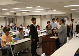 全ての研修が終了後、修了証授与が行われ各単位会受購生代表者(神奈川会は湘南第一支部菅野光会員)に修了証が手渡されました。